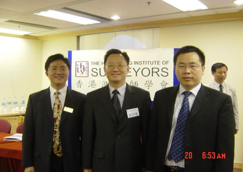 2006年4月永业行总经理潘世炳博士访问香港期间,与香港测量师学会会长黄仲衡先生(中)和戴德梁行执行董事赵锦权先生合影。