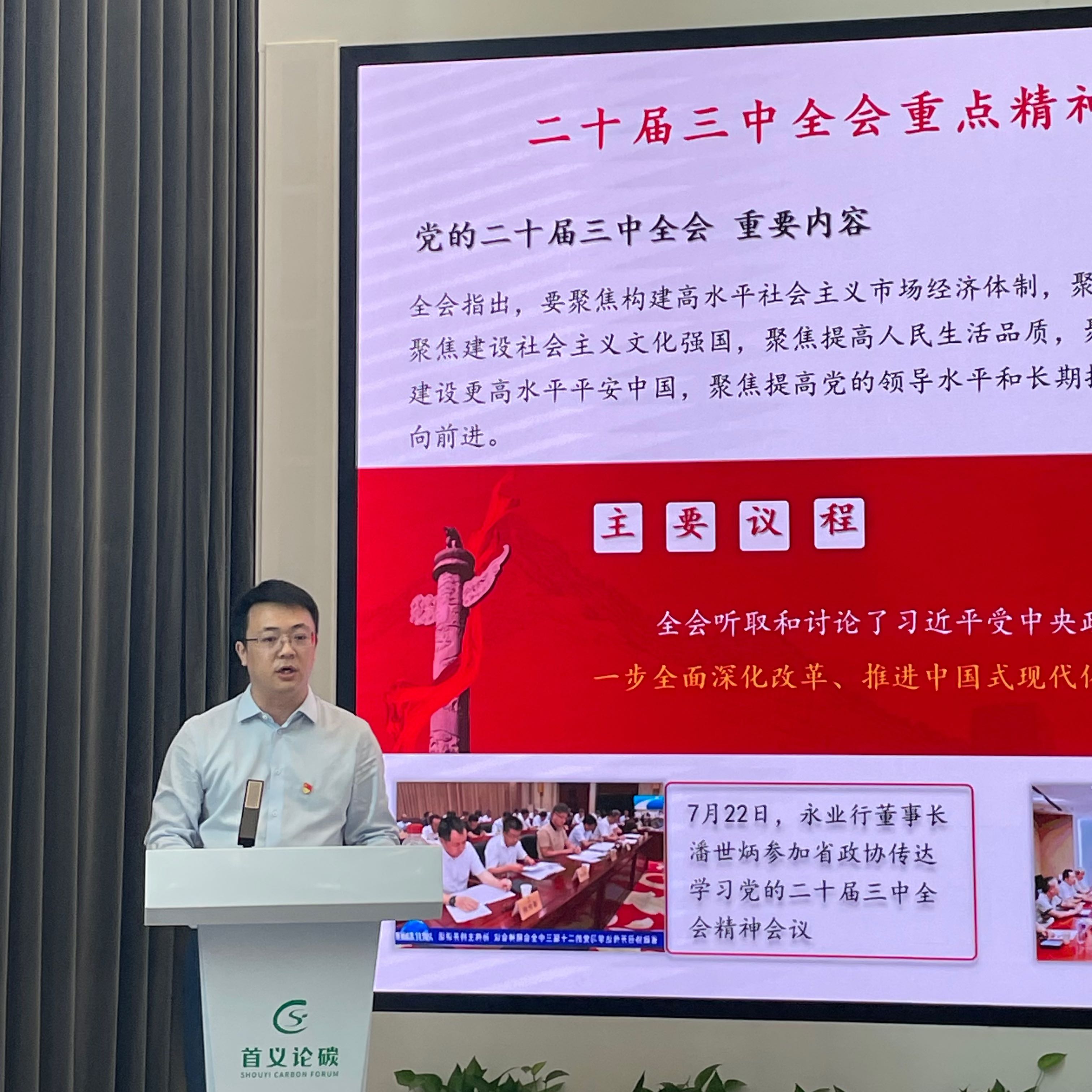 文云波结合永业行党建工作实际,分享了永业行将思想和行动统一到全会精神上的改革创新经验做法。他表示,永业行始终坚持党建引领、参政议政、企业经营“三结合”,将党建文件学习和公司战略研讨、业务优化、咨政建言相结合,极大提升了参政议政的针对性和专业服务的实效性。近年来,聚焦“资源-资产-资本”转化路径,围绕大财政体系深化赋能,协同降碳、减污、扩绿、增长,推动环境、金融、产业、投资等要素与经济活动的耦合协调,为区域发展提供智力支持和解决方案,全力赋能绿色转型。2024年8月8日,湖北省委副书记、省长王忠林等领导调研永业行,对永业行在绿色低碳发展、“资源—资产—资本”转化路径、大财政体系等方面的探索、创新实践给予高度评价,并对永业行在绿色低碳发展、三资转换等方面寄予厚望。结合永业行实践案例,深入解读了二十届三中全会关于推动生态文明体制改革精神要义,为区域绿色发展转型提供了相关思路建议。