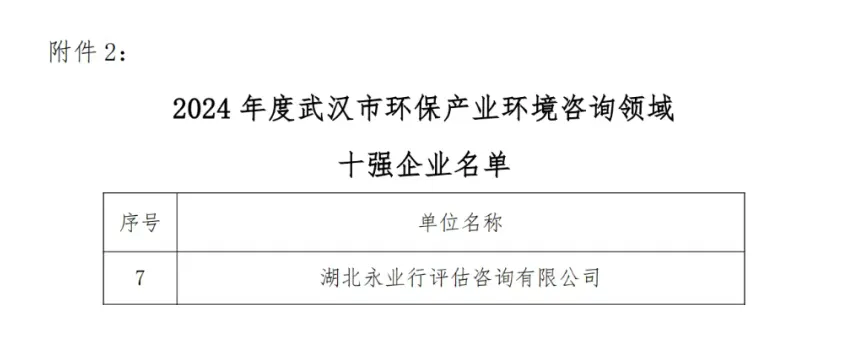 近日,武汉市环境保护产业协会公布2024年度环保产业榜单,永业行凭借在环境咨询、生态修复及绿色金融等领域的综合实力,同时获评2024年度“武汉市环保产业百强企业”和“武汉市环保产业环境咨询领域十强企业”。