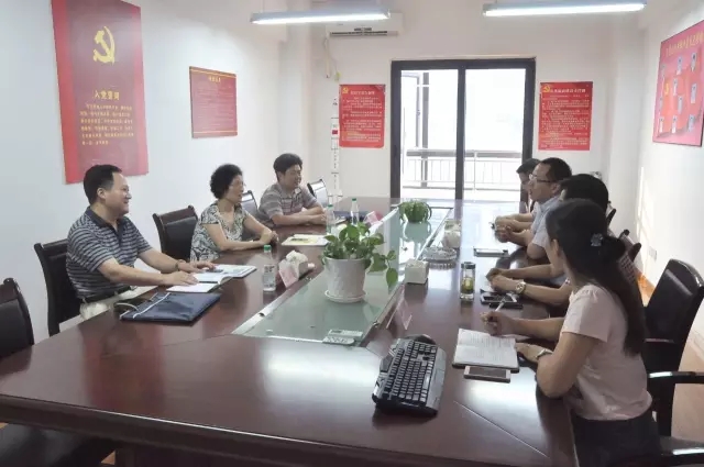 永业行董事长方国成、总裁潘世炳、市场品牌部负责人杨雪莲、人力资源部负责人杨乐热情接待了刘局长一行。董事长方国成感谢省工商局一直以来对永业行的关怀和帮助,总裁潘世炳从业务发展、永业行建设、商标管理等方面汇报了永业行基本情况。