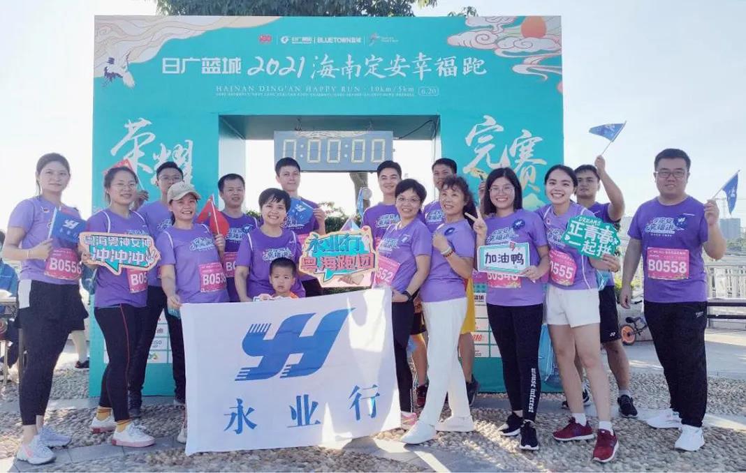 为庆祝建党100周年,丰富人民群众文化体育生活,6月20日,以“活力定安 幸福奔跑”为主题的2021海南定安幸福跑活动在定安县政府前举行。永业行粤海区总经理周攀、综合咨询部负责人孙小丽、自然资源事务部负责人张健携粤海区部分员工及家属参加5公里幸福跑项目。